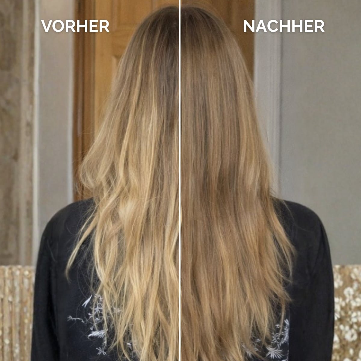 | Sehr lang / sehr dicht (bis Taille +) | 150-180 ml | 3 Packs | Bei dickem, porösem Haar lieber die obere Menge wählen. |